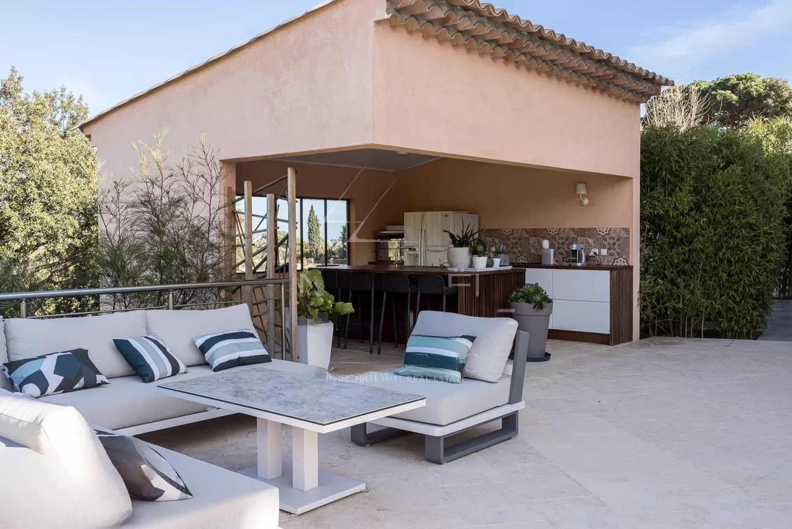 Ее сад площадью 2600 м² полностью засажен средиземноморскими растениями и оборудован игровой площадкой для буля, подогреваемым соленым бассейном и оборудованным пул-хаусом, что создает роскошную и расслабляющую атмосферу.