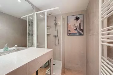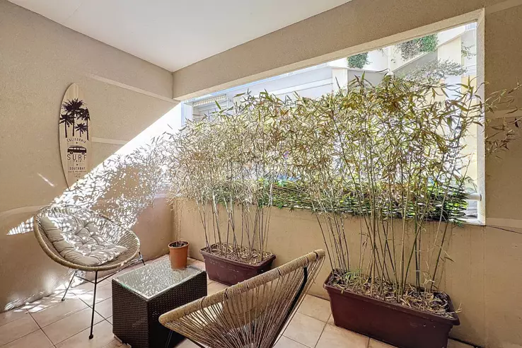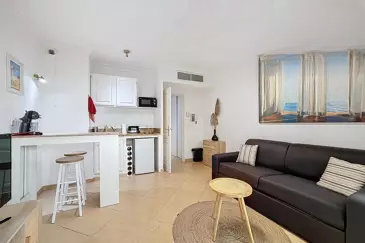 PALM BEACH - В двух шагах от пляжей и удобств, в ухоженном доме высокого класса с озелененным парком, предлагается студия "под ключ". Она состоит из прихожей с шкафом, гостиной с кухонной зоной, террасы с восточной ориентацией, и душевой комнаты с туалетом.