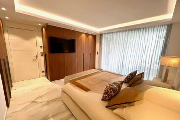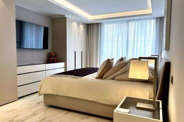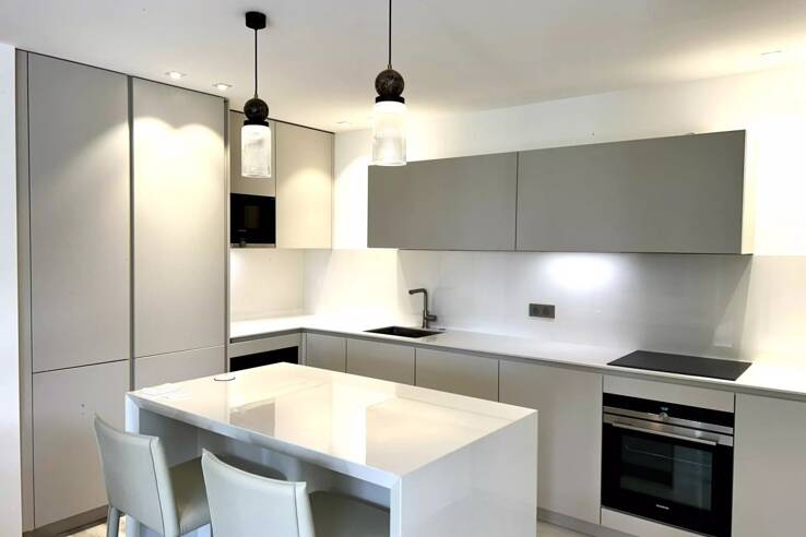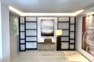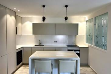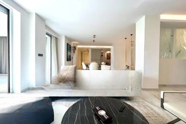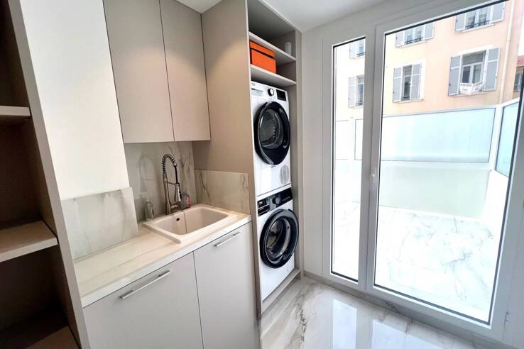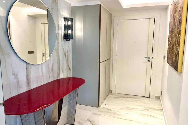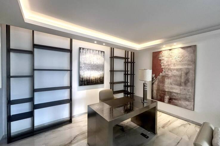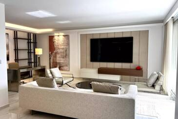 Полностью обновлённая с высококачественной отделкой, квартира открывается в элегантный холл, ведущий в светлую гостиную со скрытым офисным пространством. Эта прекрасная зона отдыха продолжается террасой с южной экспозицией, предлагая открытый вид до самого моря. Современная открытая кухня новая и полностью оборудованная.