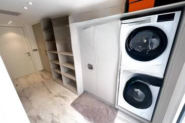 Зона отдыха состоит из двух спален с ванными комнатами, каждая с гардеробной и приватной душевой с туалетом. Прачечная, гостевой туалет и вторая терраса с западной экспозицией дополняют эту исключительную недвижимость.