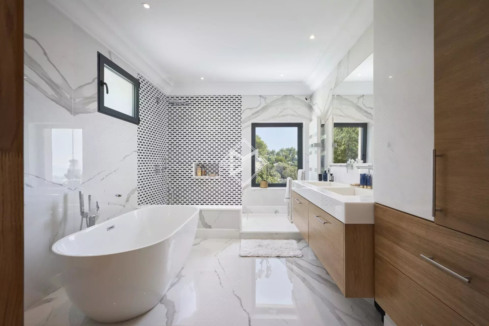 Полностью обновленная в 2020 году, эта недвижимость расположена на участке 2 400 м² и включает 5 спален с ванными комнатами, включая просторную главную спальню, занимающую целый этаж с собственной террасой.