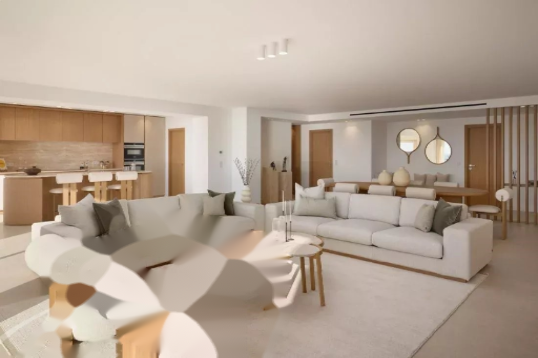 ️ Площадью около 207 м², она включает в себя: прихожую, гостевой туалет, просторную гостиную с обеденной зоной, кухню, все это с выходом на большую террасу площадью около 35 м². Также в квартире имеется четыре спальни с ванными комнатами, включая главную спальню с гардеробной и собственной ванной комнатой, а также прачечная.