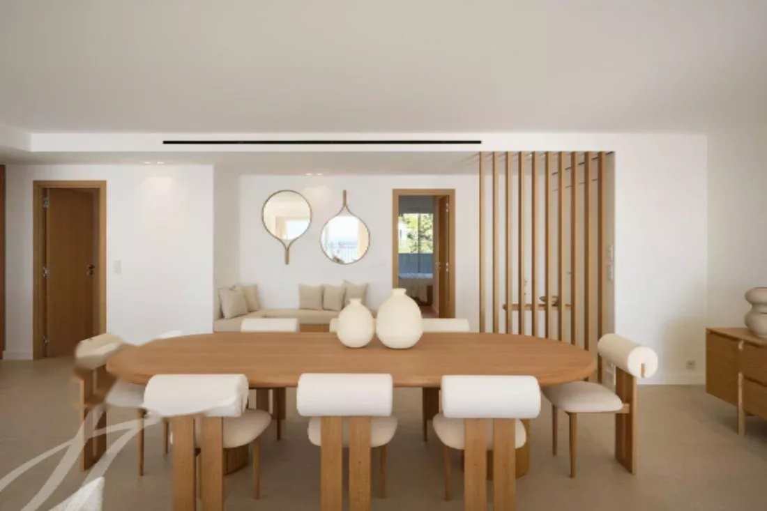 Расположенная в престижной резиденции с охраняемым парком, бассейном, теннисным кортом, круглосуточной охраной и консьержем, эта недавно отремонтированная квартира из высококачественных материалов предлагает захватывающий вид на море, бухту Канн и Эстерель.