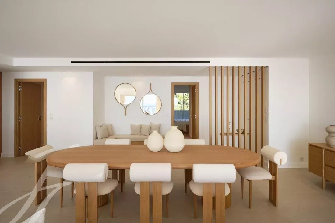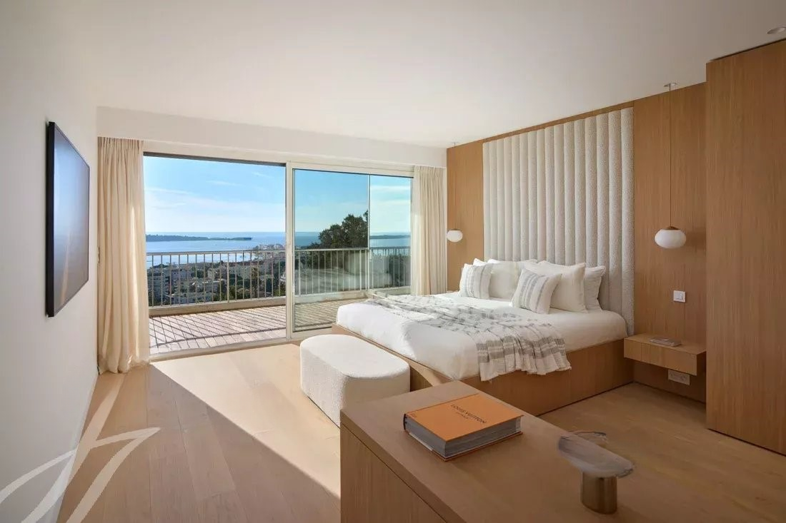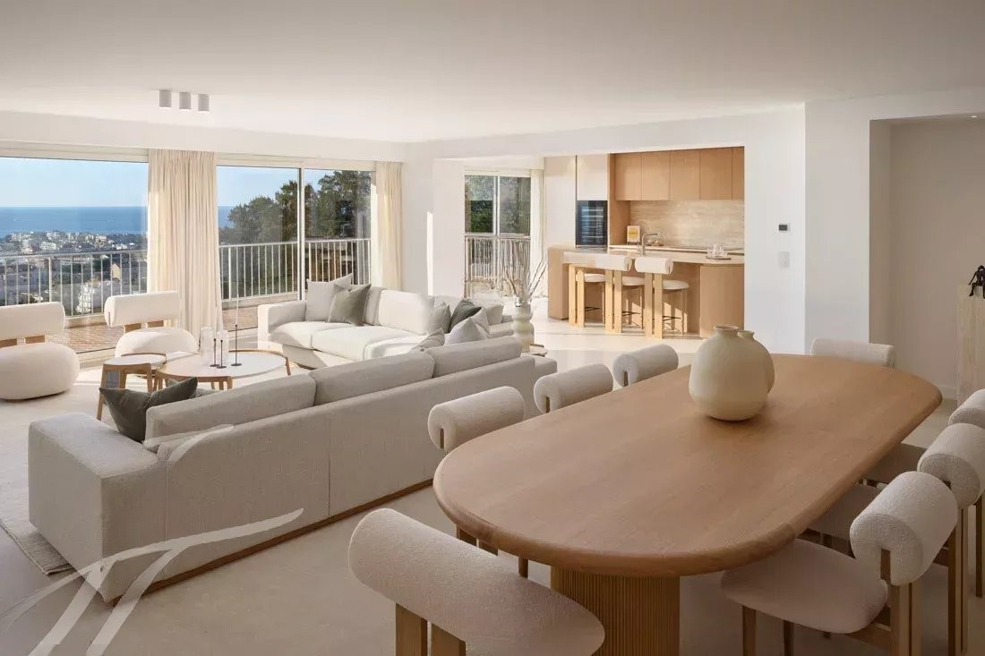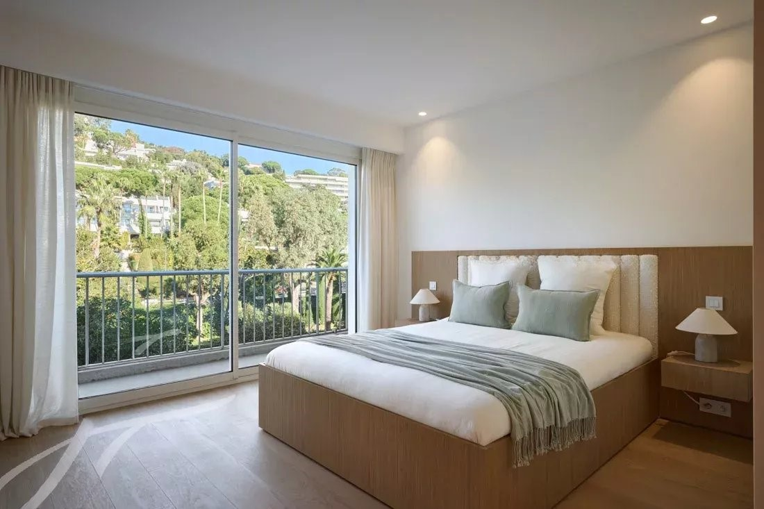 Эта квартира, расположенная в престижной резиденции с охраняемым парком, бассейном и теннисным кортом, а также круглосуточной охраной и сервисом консьержа, недавно была обновлена с использованием высококачественных материалов и предлагает захватывающий вид на море, залив Канн и Эстерель.