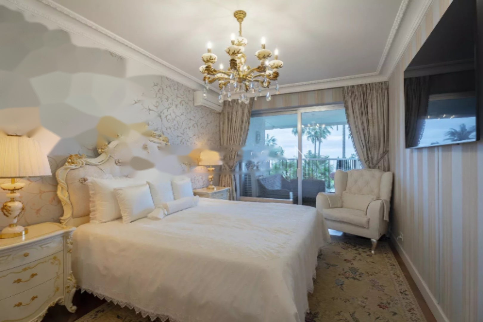 Sea view, Building of 9 floors, South exposure, On the 1st floor, Year built 1980, 4 rooms, Storage room 2.07 m², 3 bedrooms, 1 shower room, Living room 31.89 m², 1 toilet, 1 bathroom, Entrance, Furnished.