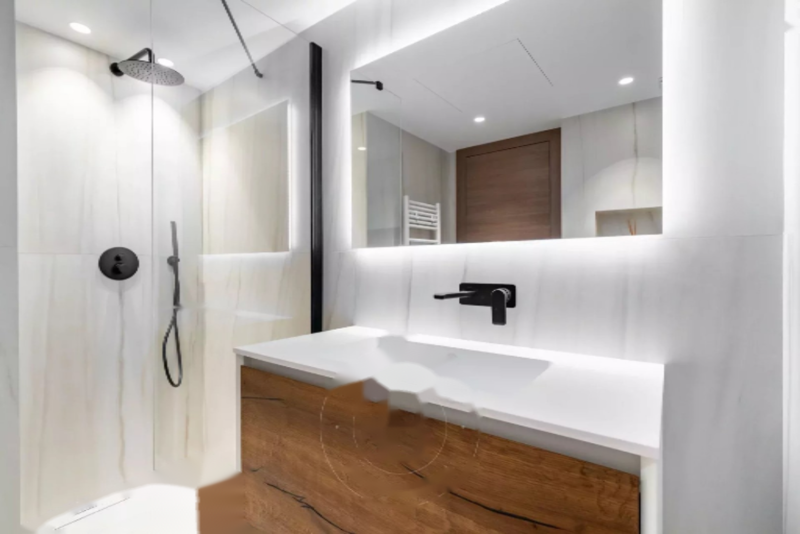 Она включает в себя прихожую, большую гостиную с открытой и оборудованной кухней, главную спальню с видом на море, душевой комнатой и гардеробной, спальню с ванной комнатой, детскую комнату или кабинет с балконом и душевой комнатой.