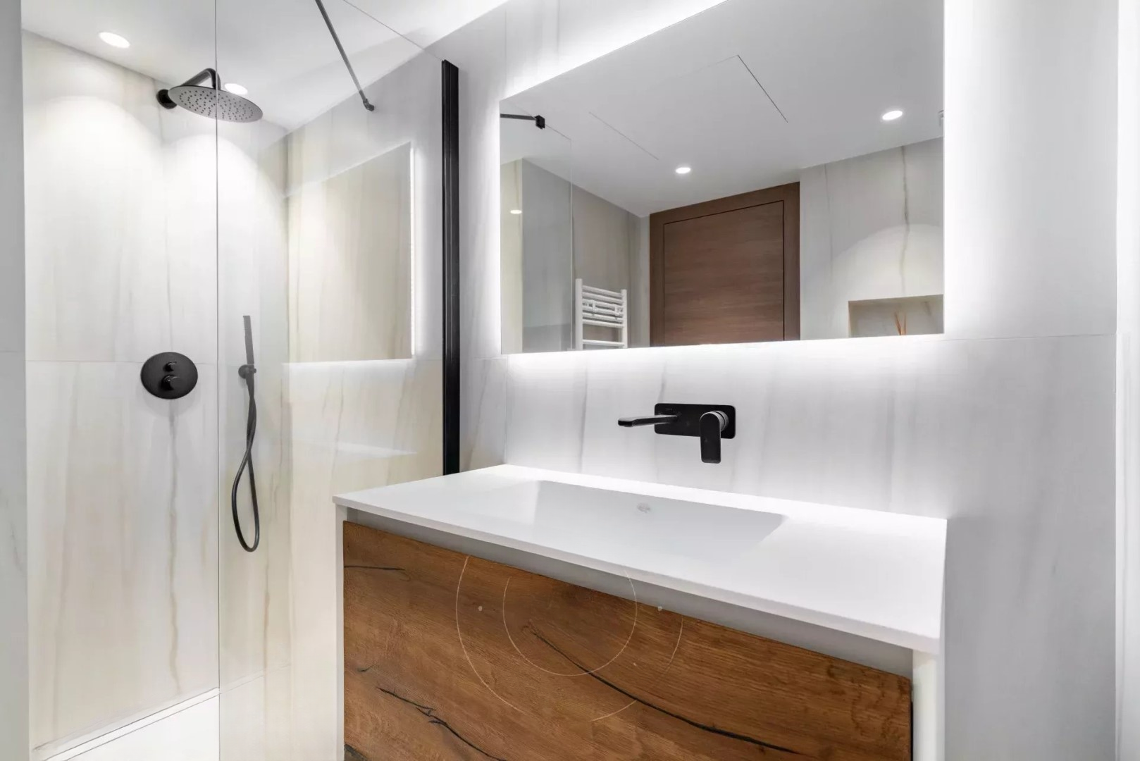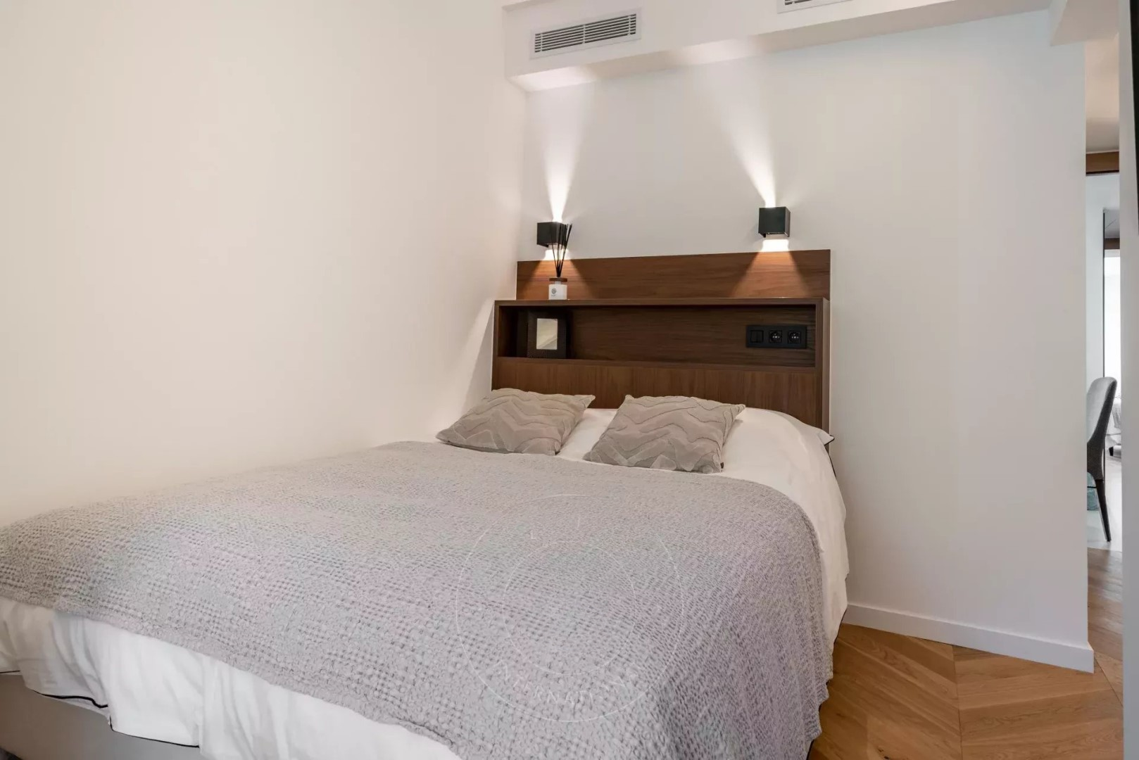 Она включает в себя вход, большую гостиную с открытой и оборудованной кухней, мастер-спальню с видом на море, душевой и гардеробной, спальню с ванной комнатой, третью детскую спальню или кабинет с балконом и душевой.