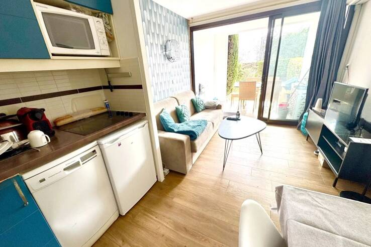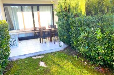 В Каннах, СРОЧНО, в эксклюзивной продаже, в престижной охраняемой резиденции с бассейном и теннисом, недалеко от пляжей и центра, восхитительная южная квартира из 2 комнат на первом этаже с садом и парковочным местом в подземке.