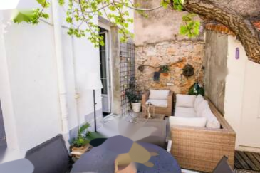 В небольшой кооперативной собственности, квартира с двумя комнатами площадью около 38 кв. м, включает гостиную открытую к кухне, душевую с туалетом, спальню с гардеробом. Есть общий небольшой дворик, которым пользуются два совладельца (возможно приобретение за дополнительную плату в кооперативную собственность).