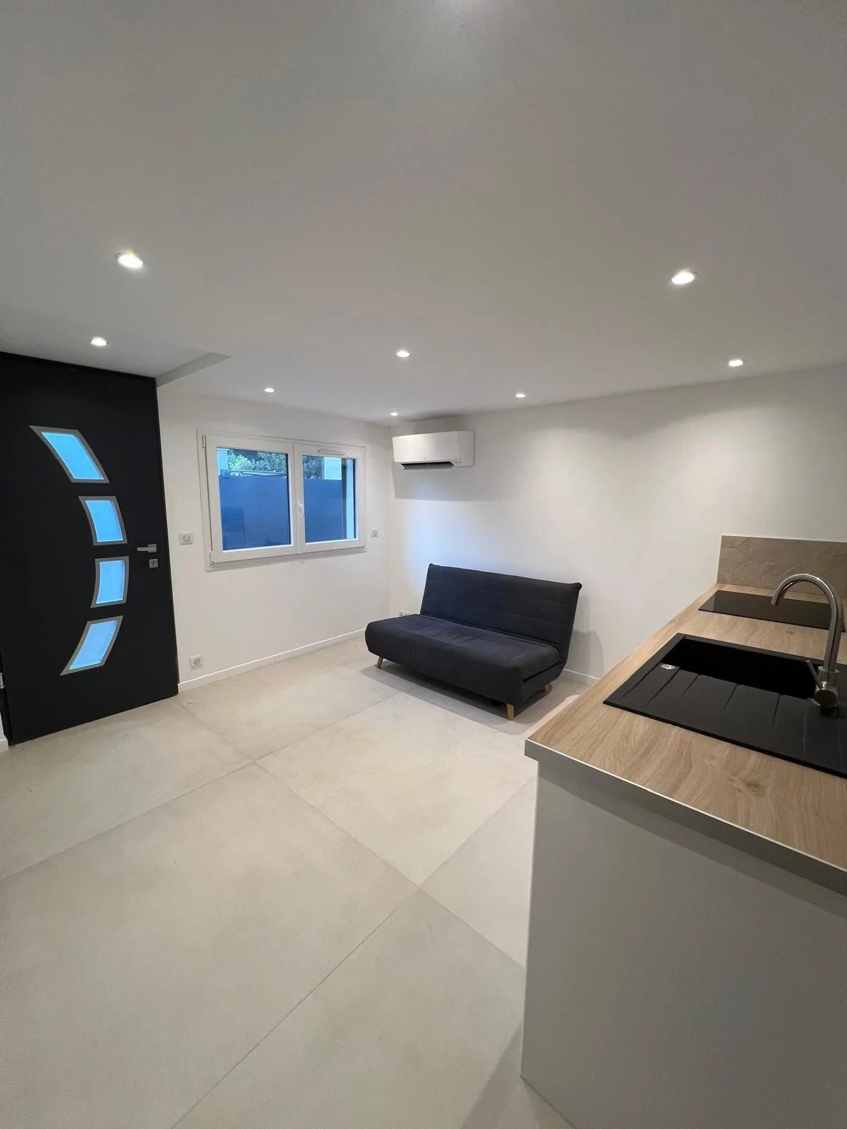 Уникальная возможность! Эта великолепная отдельностоящая вилла площадью 130 м², полностью отремонтированная, расположена в небольшом спокойном тупике в жилом районе. Здание разделено на три независимых квартиры: две квартиры с двумя комнатами на уровне земли и одна квартира с тремя комнатами на этаже, с выходом на террасу. Отлично подходит как для постоянного проживания, так и для сезонного отдыха и сдачи в аренду. Каждая квартира оборудована системой кондиционирования и встроенной кухней. Все новое. ✔️ Имеется крытая парковка на 3-4 машины и очень красивый ровный сад с возможностью установки наземного бассейна.