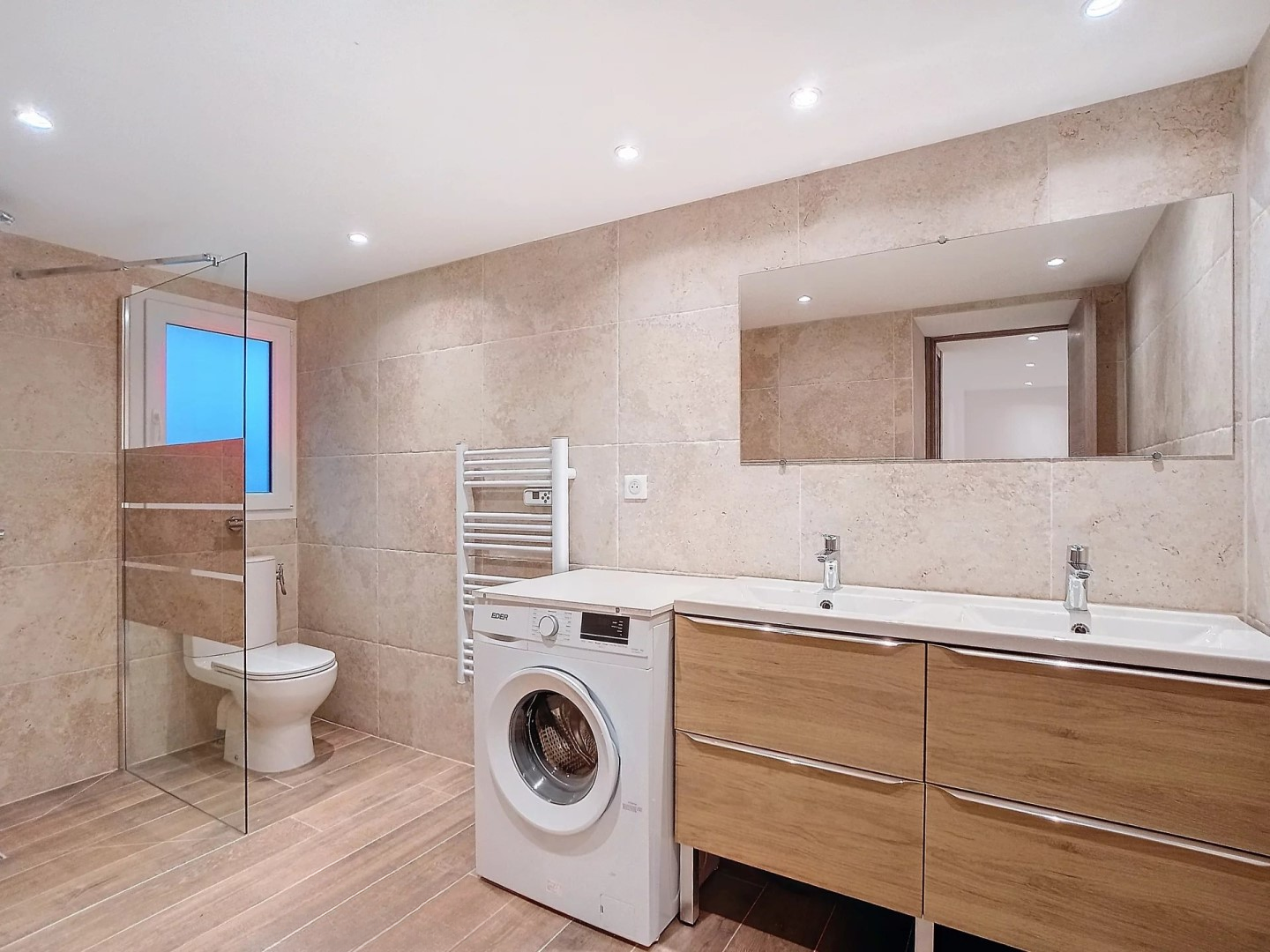 Southern and western exposure, year of construction 1953, no direct view, building of 1 floor, quiet, 5 rooms, living room 25.45 sq. m, unfurnished, 4 bedrooms, individual reversible air conditioning heating, 5 toilets, 4 shower rooms