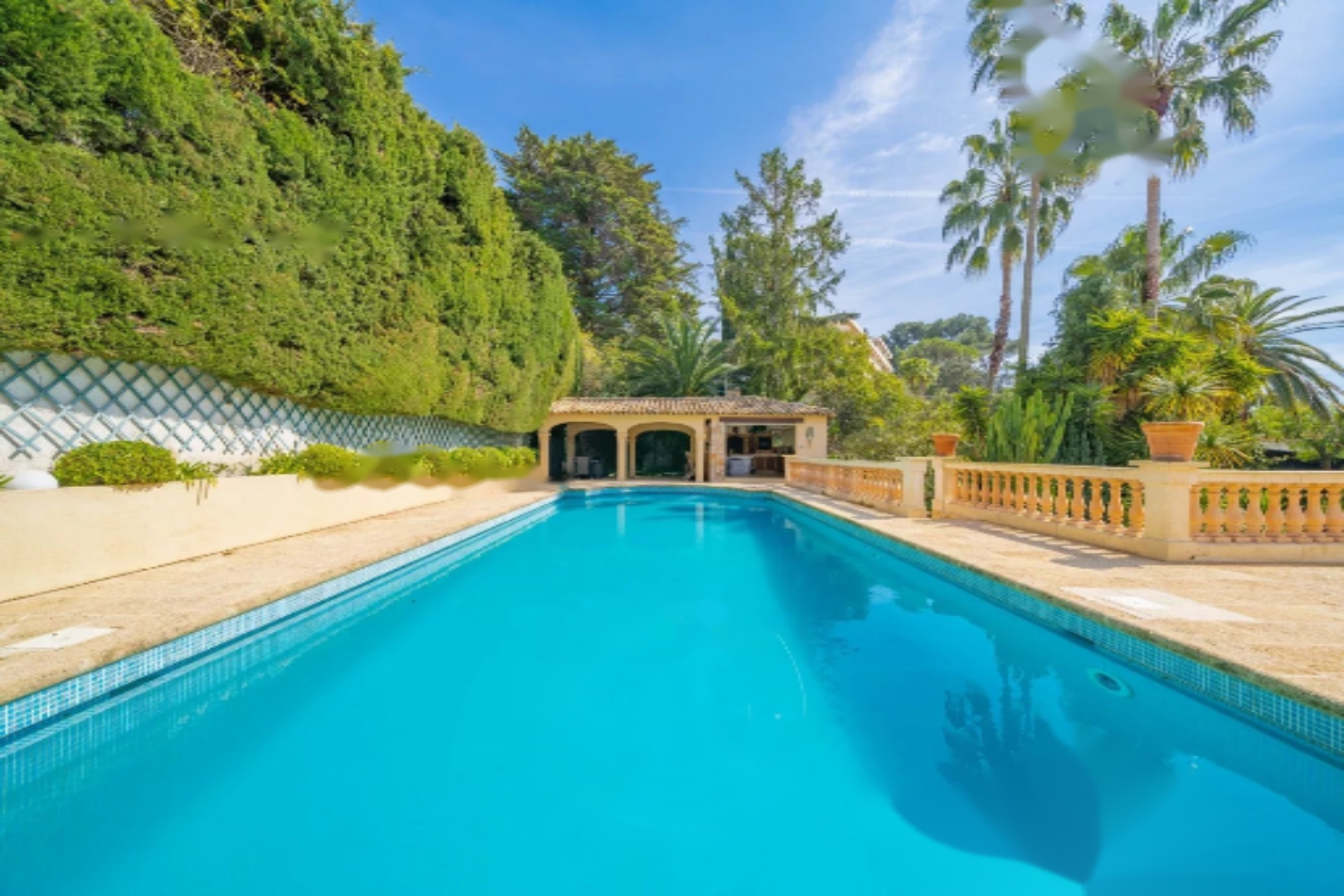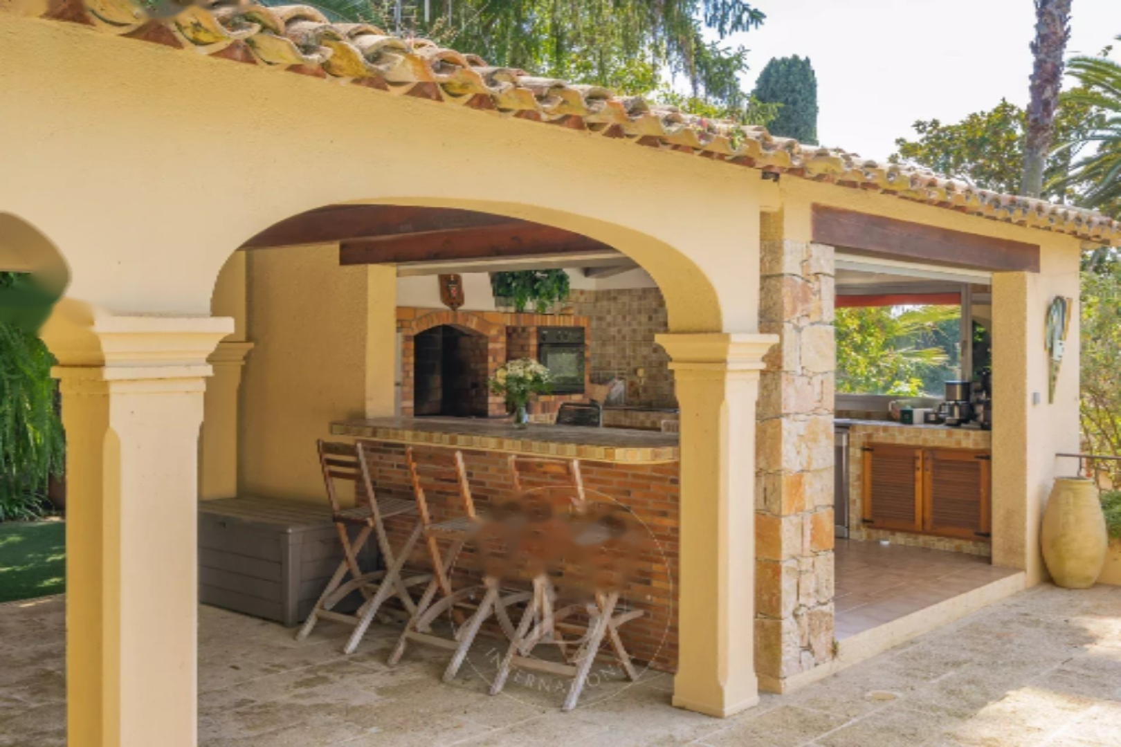 В доме имеется гостиная, выходящая на просторную террасу, оборудованная кухня, столовая, кабинет и 5 спален с ванными комнатами. ♂️ Бассейн дополнен домиком у бассейна с оборудованной кухней. Старый голубятник был преобразован в гараж. В качестве дополнительных помещений: подвалы, винный погреб и прачечная.