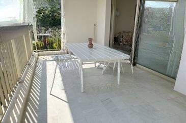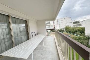 Она состоит из красивой прихожей, светлой гостиной с открытым видом на парк, оборудованной кухни с видом на море, спальни с шкафами, душевой комнаты и отдельного туалета. Приятная терраса площадью 13 м² продлевает жилое пространство. Комфорт обеспечивается кондиционером в гостиной и спальне.