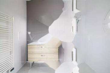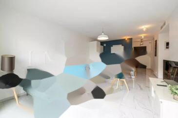 Площадь составляет 66,58 кв. м (по закону Carrez) и имеет террасу площадью 16,27 кв. м. Включает в себя вход, открытую кухню, светлую гостиную и две спальни с ванными комнатами, каждая со своей ванной комнатой. Также имеется отдельный туалет с прачечной.