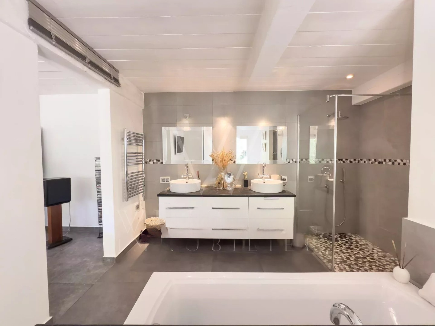 Второй дом, полностью отремонтированный, предлагает 70 м² и включает большую спальню с ванной комнатой, а также просторную гостиную и оборудованную кухню, выходящую на великолепную тенистую террасу и сад площадью 900 м².