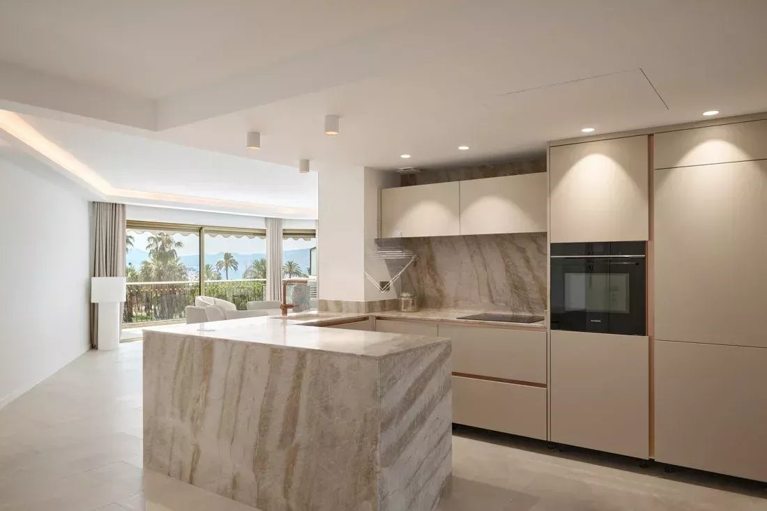 Прекрасная квартира площадью 95 м², полностью отремонтированная в соответствии с Законом Каррез, расположена напротив порта Canto на престижном бульваре de la Croisette, в охраняемой резиденции высокого класса с консьержем.