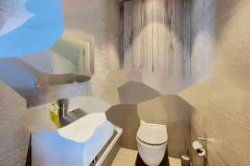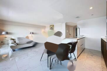 Квартира состоит из просторной и светлой гостиной с открытой кухней, идеально подходящей для приёма гостей. В ней также есть две спальни люкс, каждая из которых оборудована собственной душевой, одна из которых с туалетом, а также отдельный гостевой туалет.