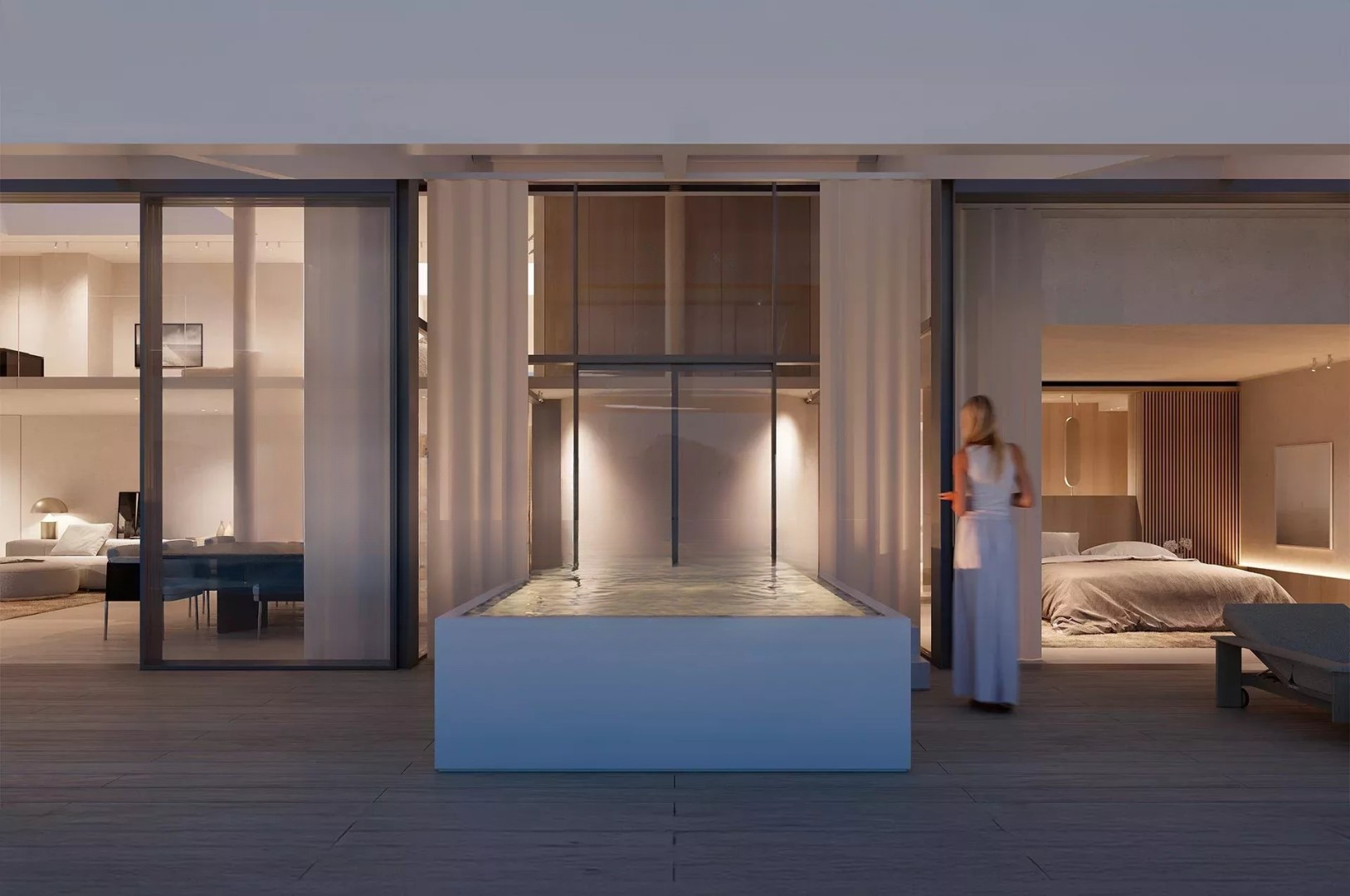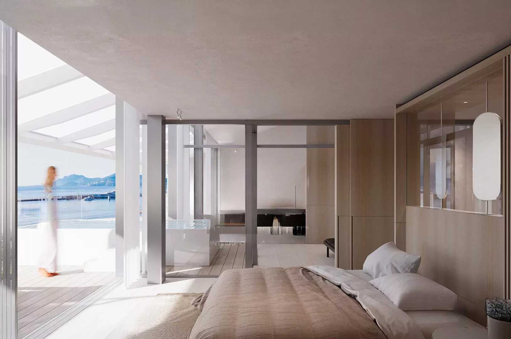 На верхнем уровне частное пространство включает роскошные сьюты, настоящие оазисы спокойствия с мраморными ванными и гардеробными на заказ. Главная сьюта, настоящий шедевр, предлагает захватывающий вид на море и доступ к частной террасе, где горизонт словно уходит в бесконечность.