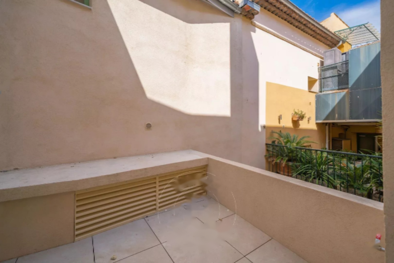 Квартира включает светлую гостиную со столовой и открытой кухней, а также главную спальню с душевой и террасой, выходящей на внутренний двор.