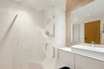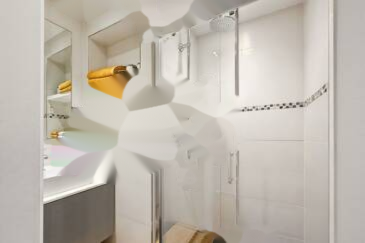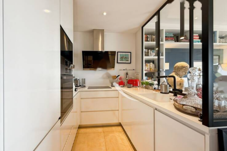 Апартаменты полностью отремонтированы и оформлены со вкусом. Они состоят из светлой гостиной с оборудованной американской кухней и двух спален, каждая с собственной ванной комнатой, одна из которых с туалетом. Имеется гостевой туалет с умывальником, а также подвал и гараж в подземной части здания.