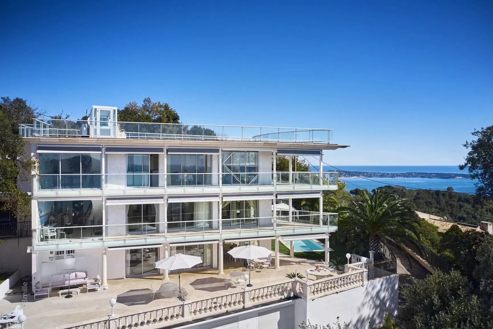 Вероятно, один из самых невероятных видов на залив Канн. Современная вилла, расположенная в небольшом закрытом комплексе по одному из самых востребованных адресов. В отличном состоянии: состоит из 4 спален и отдельной квартиры. Жилая зона с кухней открывается на большие террасы с потрясающими видами. Пространство у бассейна с джакузи включает летнюю кухню и зону отдыха. Кондиционирование и лифт обеспечивают непревзойденный комфорт проживания.
