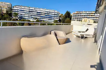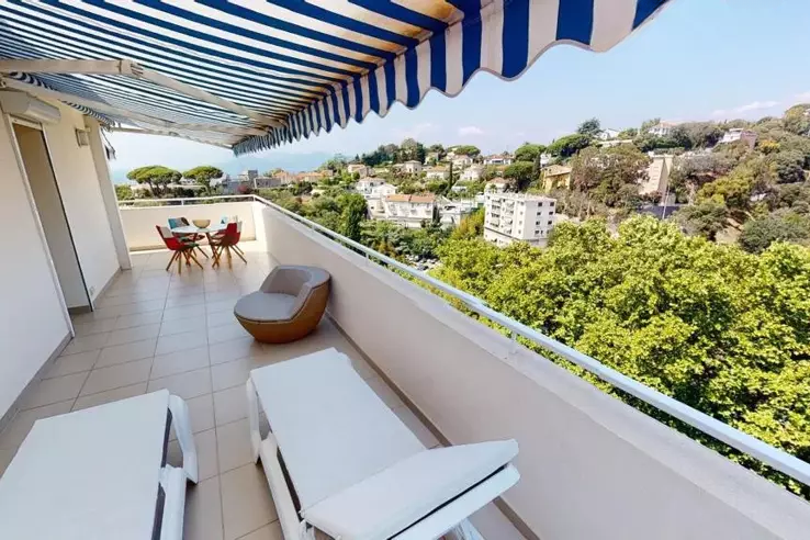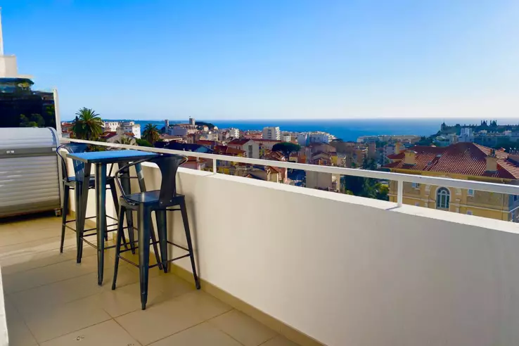 3 комнаты и студия с террасой с видом на море в районе Stanislas на 5-м и 6-м этажах престижной резиденции, обеспечивающей безопасность. Насладитесь панорамными видами и хорошей доходностью от сдачи в аренду. Две кладовые и открытая парковка. Не упустите возможность посетить!