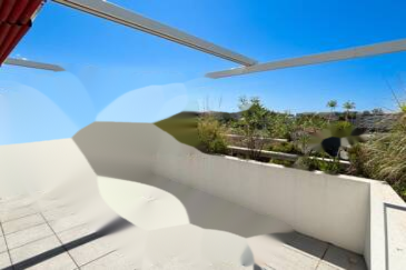 Эта терраса оборудована электрическим тентом, который автоматически закрывается при сильном ветре для безопасности, что позволяет вам наслаждаться отдыхом без забот.