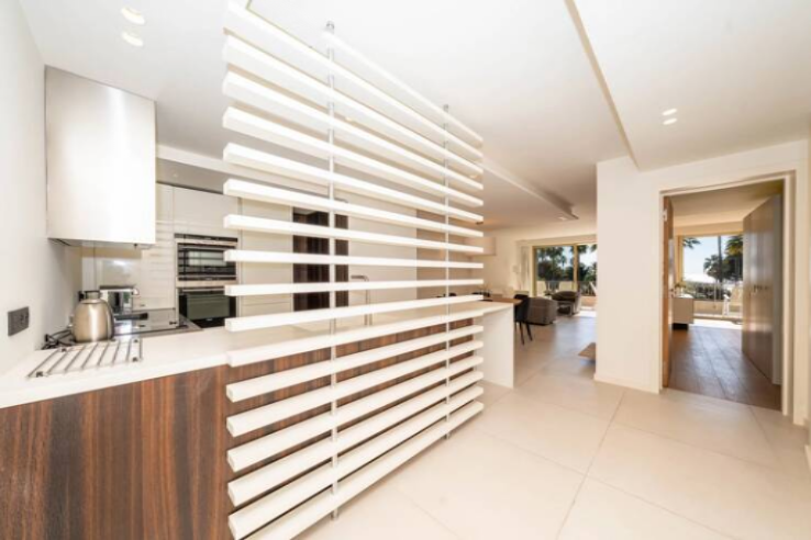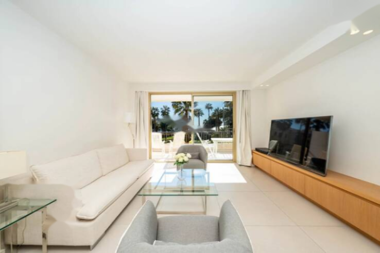 Он включает входную зону, просторную и светлую гостиную с обеденной зоной, полностью оборудованную кухню, все это ведет на террасу площадью 17 м² с панорамным видом на море.