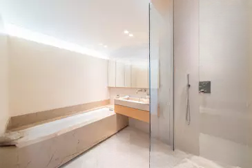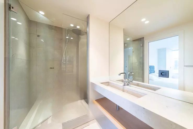 Ночная зона включает три спальни, каждая с собственной ванной комнатой, включая родительскую спальню. Гостевой туалет. Кондиционер, встроенные шкафы, высококачественные материалы.
