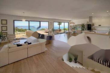 Канны Калифорния — Эта великолепная современная вилла, расположенная на возвышенности в престижном районе Супер Канн, площадью около 280 м², предлагает захватывающий вид на море, мыс Антиб и острова Лерен. Построенная на ухоженном участке площадью 1,320 м², она обладает абсолютным спокойствием и идеальной солнечной экспозицией.