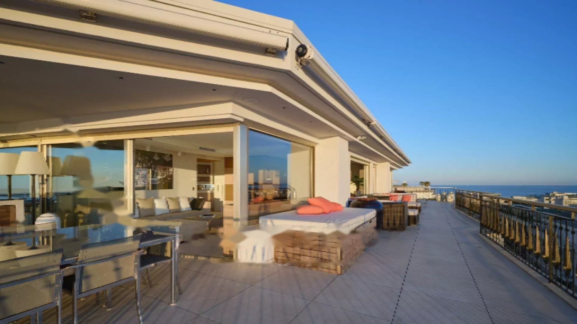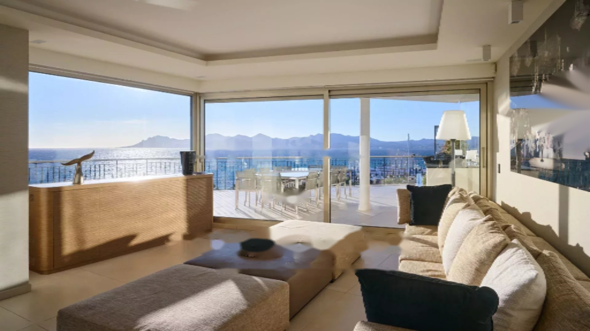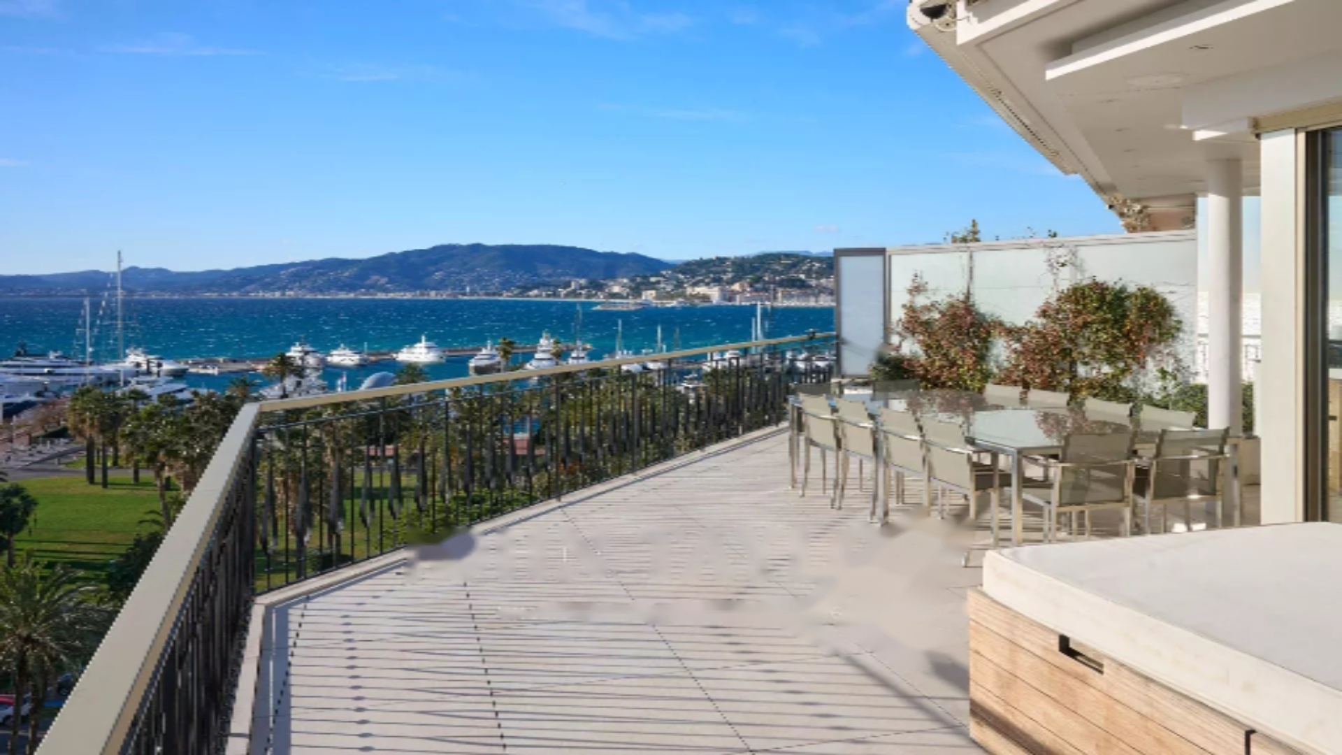 Это пентхаус, расположенный на верхнем этаже престижной резиденции на набережной Круазетт, общей площадью 158 м². Он включает в себя просторную гостиную/столовую с барной зоной и двумя винными погребами, открывающуюся на впечатляющую террасу площадью 156 м², с потрясающим видом на порт Кантон, Палм Бич, залив Канн и острова Лерин. Закрытая кухня, полностью обустроенная, имеет доступ ко второй террасе. Апартаменты содержат четыре спальни, включая главную спальню с собственной ванной и душевой и выходом на террасу с видом на море. Дополнительная спальня с приватной душевой и еще две спальни, разделяющие душевую.