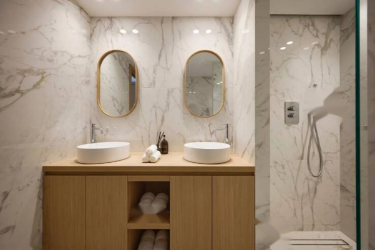 Апартамент включает кухню-гостиную площадью 42 м², три спальни с ванными комнатами, два гардероба, туалеты, два подвала, подземную парковку и большой гараж. ☀️