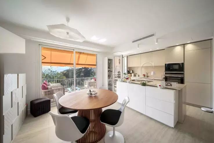 ️ В нескольких шагах от удобств, знаменитой набережной Croisette и пляжей, в резиденции высокого класса с консьержем, на 3-м этаже, предлагается просторная квартира с жилой площадью 75 м² и необозримым видом на парк и боковым видом на море.