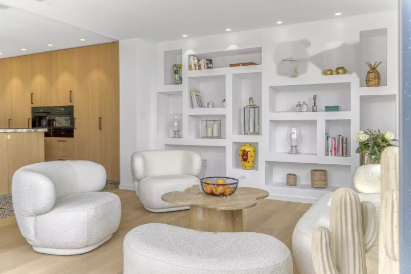 Она включает в себя светлую гостиную площадью 70 м², 4 спальни и 4 ванные комнаты на площади примерно 247 м². Также есть подсобное помещение с прачечной и большой закрытый гараж площадью 26 м².