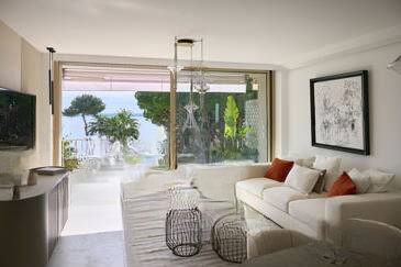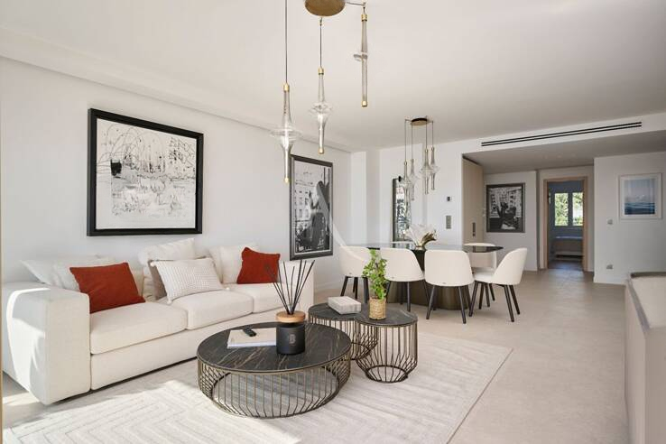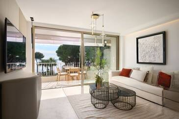 Канны Палм-Бич, в престижной резиденции с прямым доступом к морю, эта квартира с 4 комнатами площадью 100 кв.м полностью отремонтирована с использованием качественных материалов, сочетая современный комфорт и элегантность.