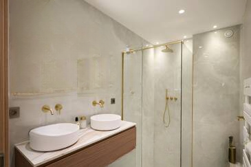Климатизация с воздуховодами, двойное остекление, продуманные детали: каждый элемент был учтен для создания спокойной и утонченной атмосферы.