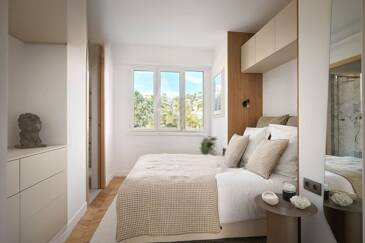 Три спальни с индивидуальными ванными комнатами имеют собственные кладовые, обеспечивая комфорт и приватность каждому жильцу.