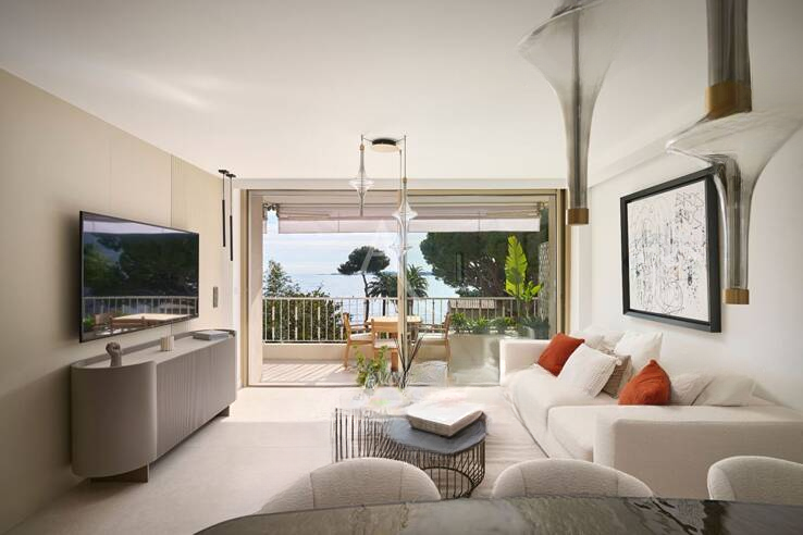 Терраса площадью 18 кв.м с южной ориентацией предлагает захватывающий вид на Средиземное море и закаты Канн.