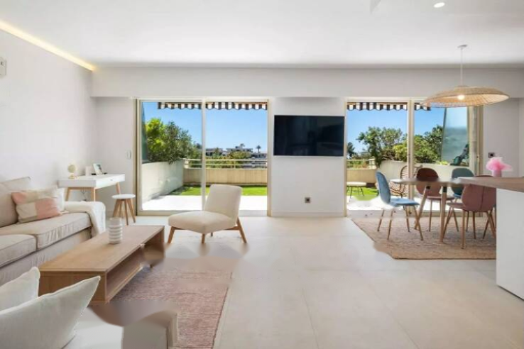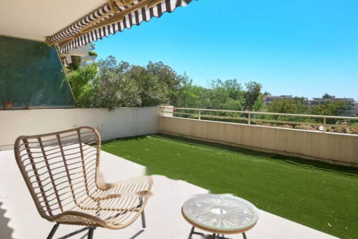 Квартира располагает уютной террасой, продолжающейся садом площадью 35,50 м² на южную сторону и террасой 5 м² на северную сторону. Подземная парковка и подвал входят в стоимость. Резиденция охраняется и имеет бассейн.