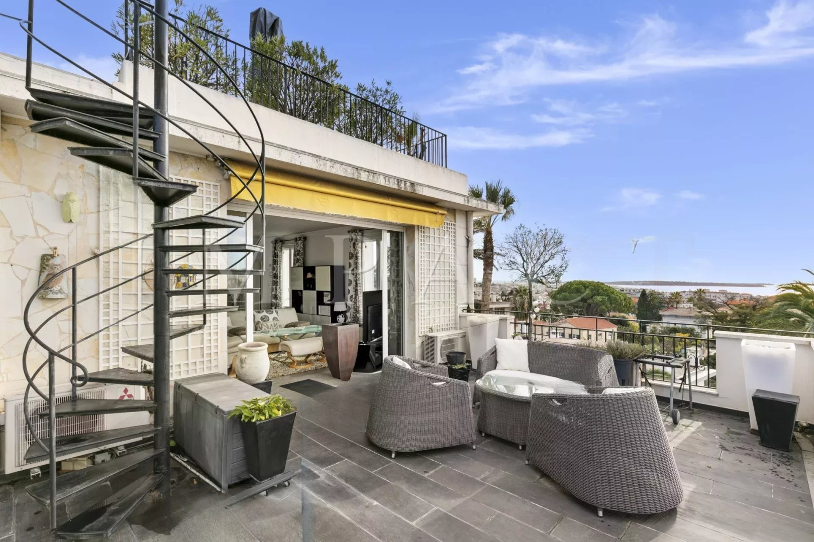 Снаружи большая терраса позволяет наслаждаться открытым видом с морем на заднем плане. Основной акцент сделан на крыше, где частная терраса предлагает замечательную панораму на Канн, острова Лерин и Средиземное море. Гараж и подвал завершают это редкое предложение.