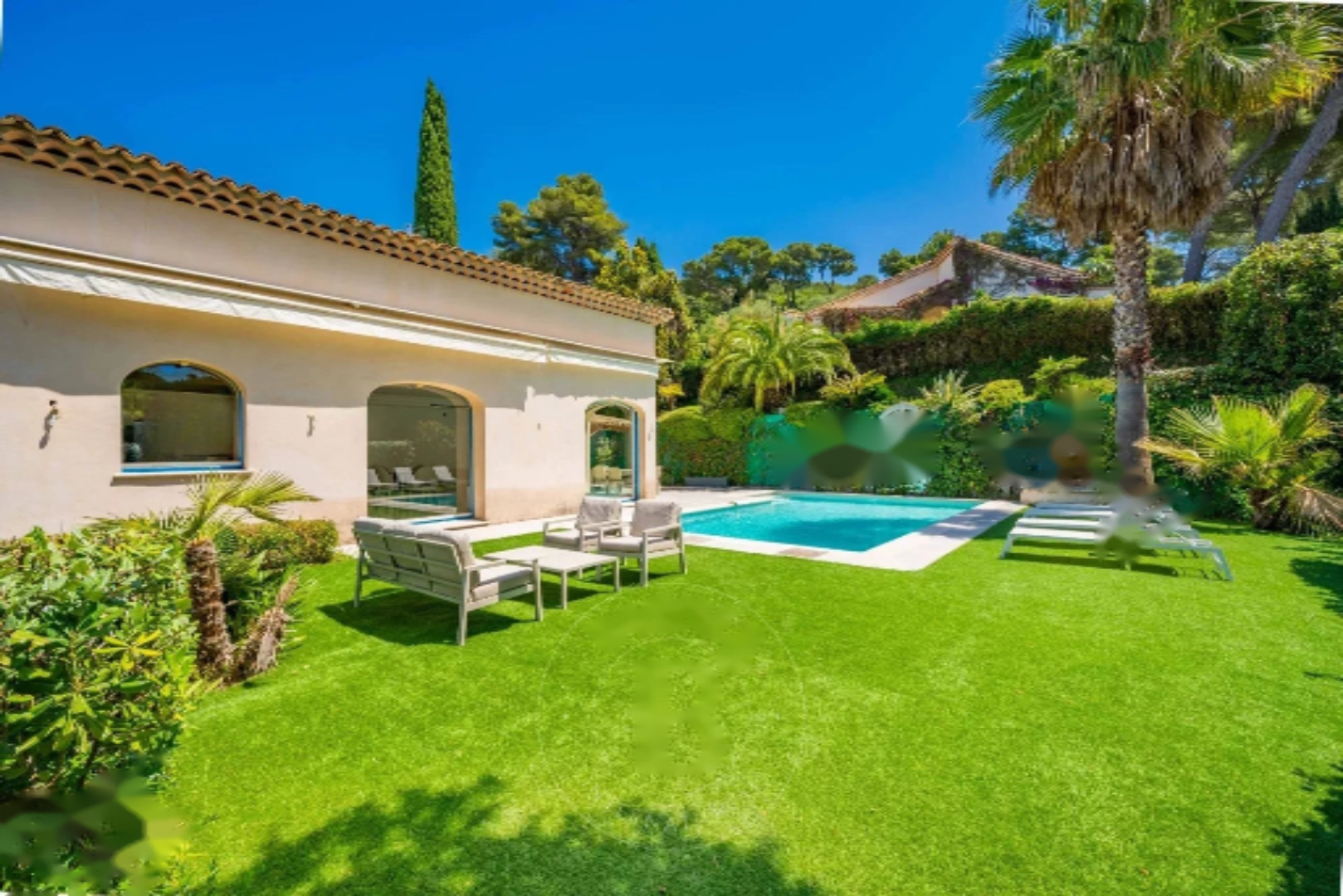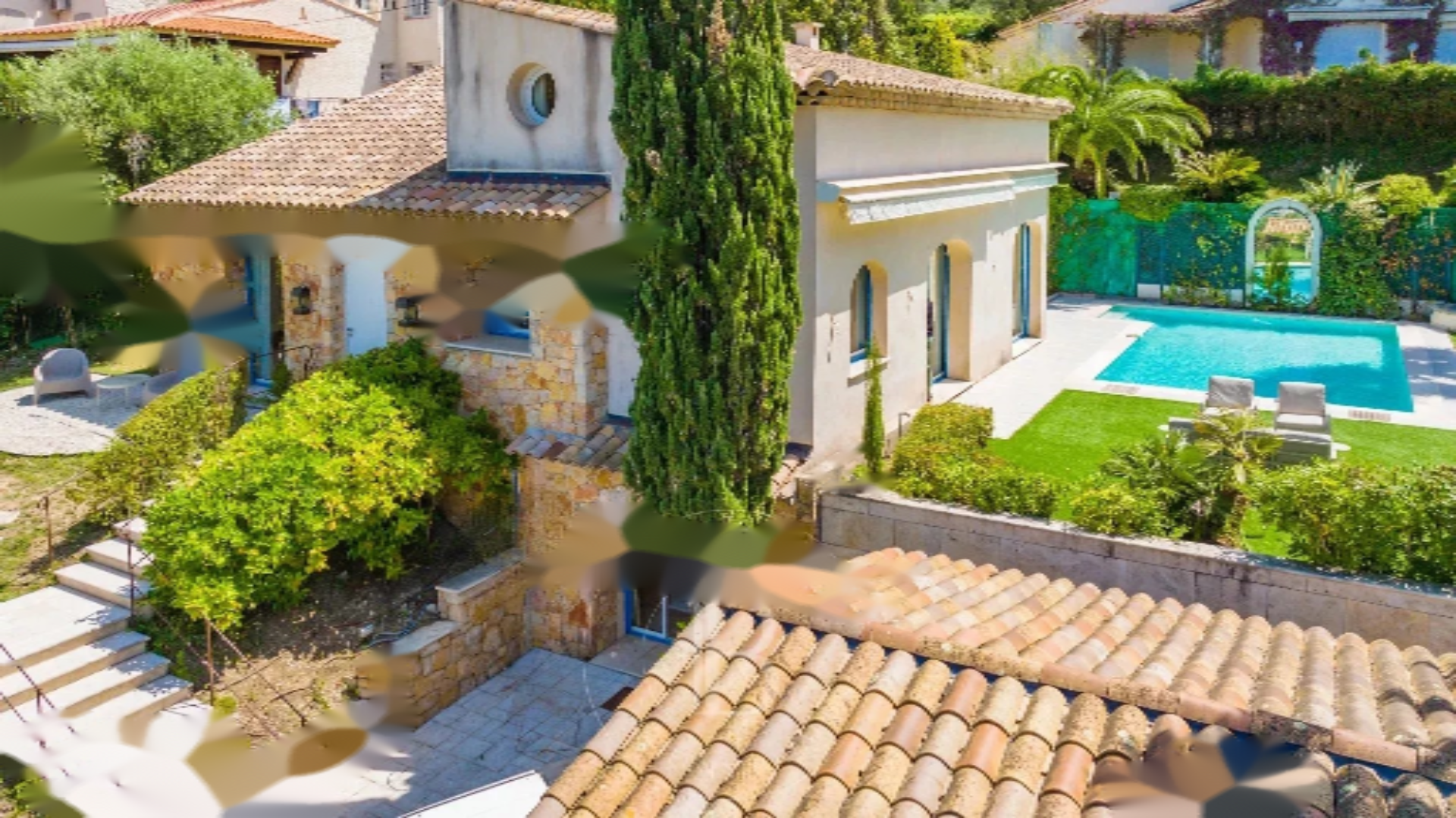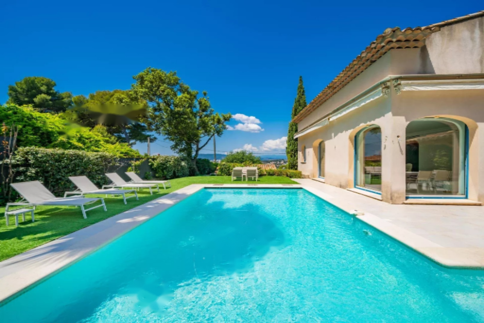 Канны: расположенная на возвышенности, очаровательная провансальская вилла в отличном состоянии с прекрасным панорамным видом на холмы и частичным видом на море, ориентированная на юг и запад.