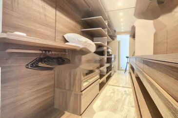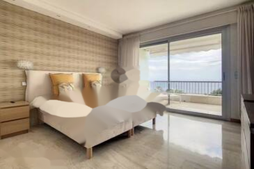 На высоком этаже, апартаменты площадью 176 м² с пятью комнатами включают в себя: прихожую, светлую гостиную со столовой, открывающуюся на глубокую террасу площадью 28 м² с потрясающим видом на море от Кап д’Антиб до островов Лерин и Эстерель, отдельную оборудованную кухню, проход с шкафом, прачечную и две южные спальни с ванными комнатами и доступом к террасе с видом на море прямо с кровати.