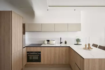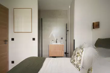 Апартамент включает две спальни с ванными комнатами, каждая из которых обеспечивает комфорт и уединение.
