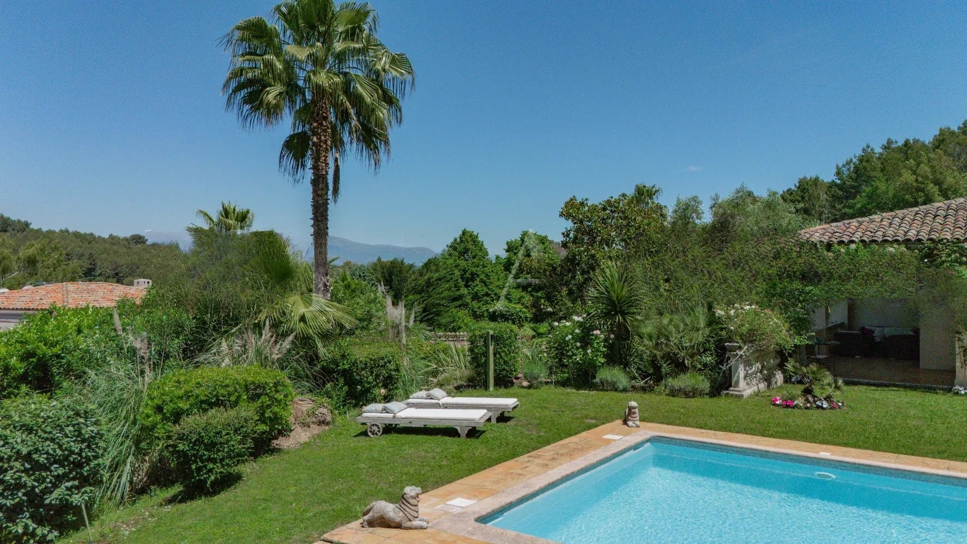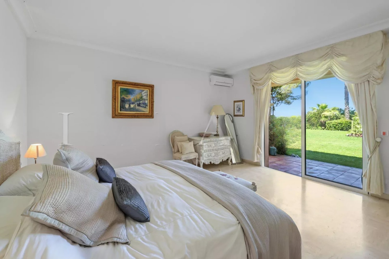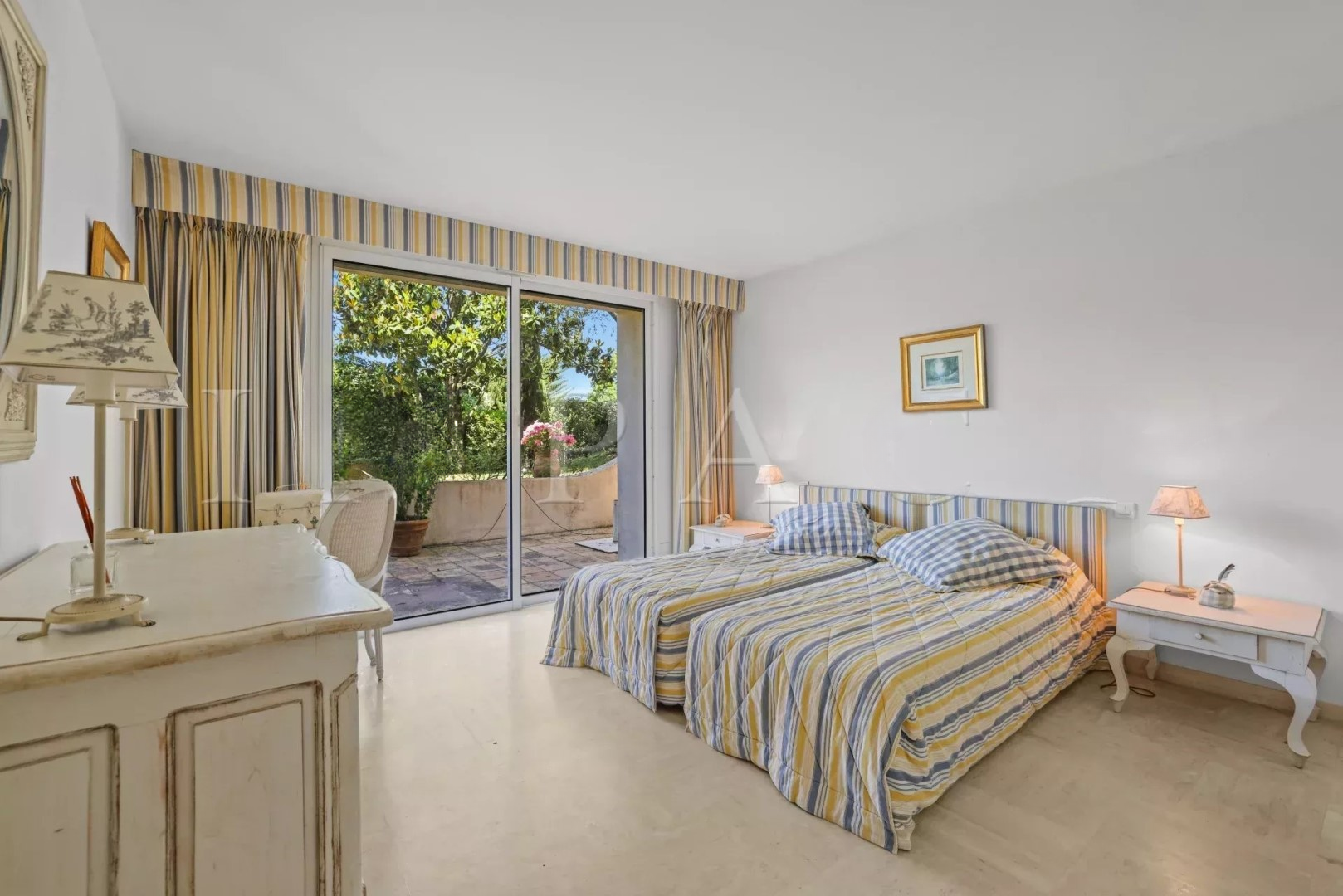 На первом этаже находится вестибюль, открывающийся на очаровательный патио. Просторная и теплая двойная гостиная с прямым выходом на террасу и к бассейну. Главная спальня с гардеробной и ванной комнатой имеет террасу с видом на сад. Кухня оборудована и открывается в столовую с видом на патио.