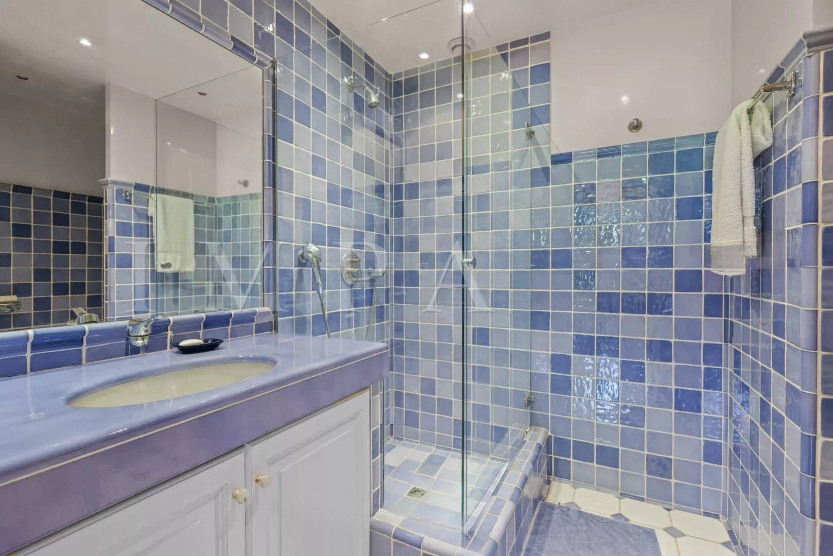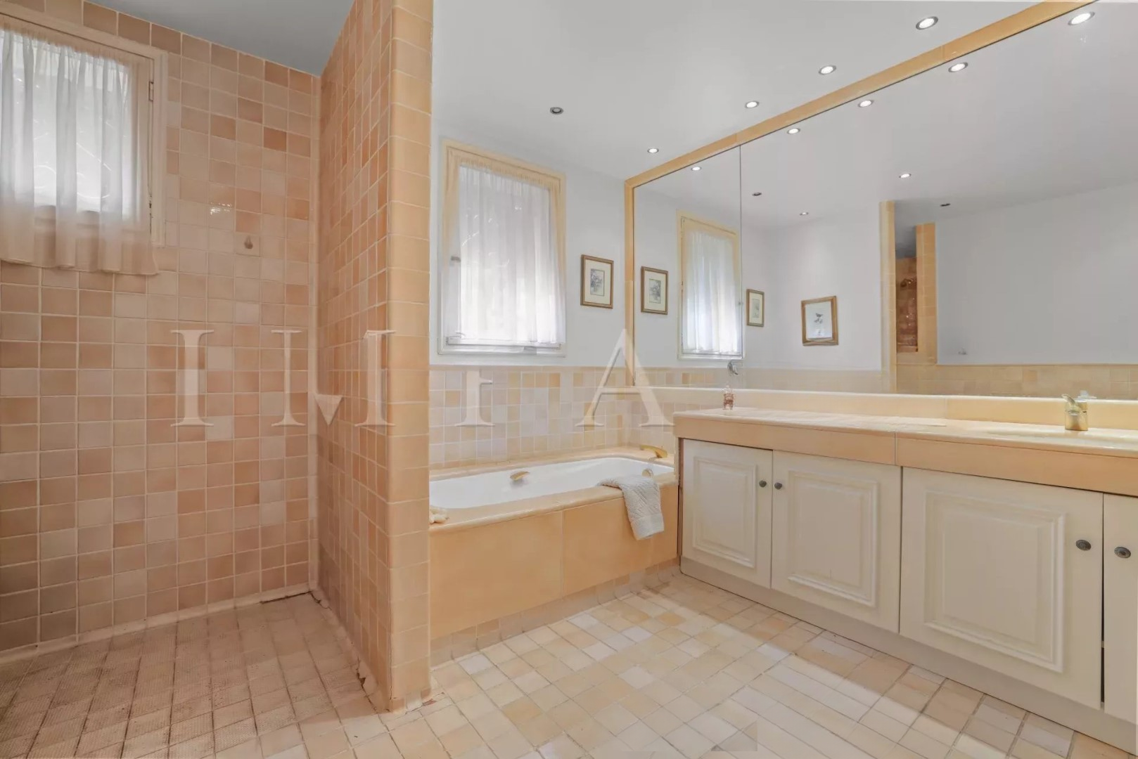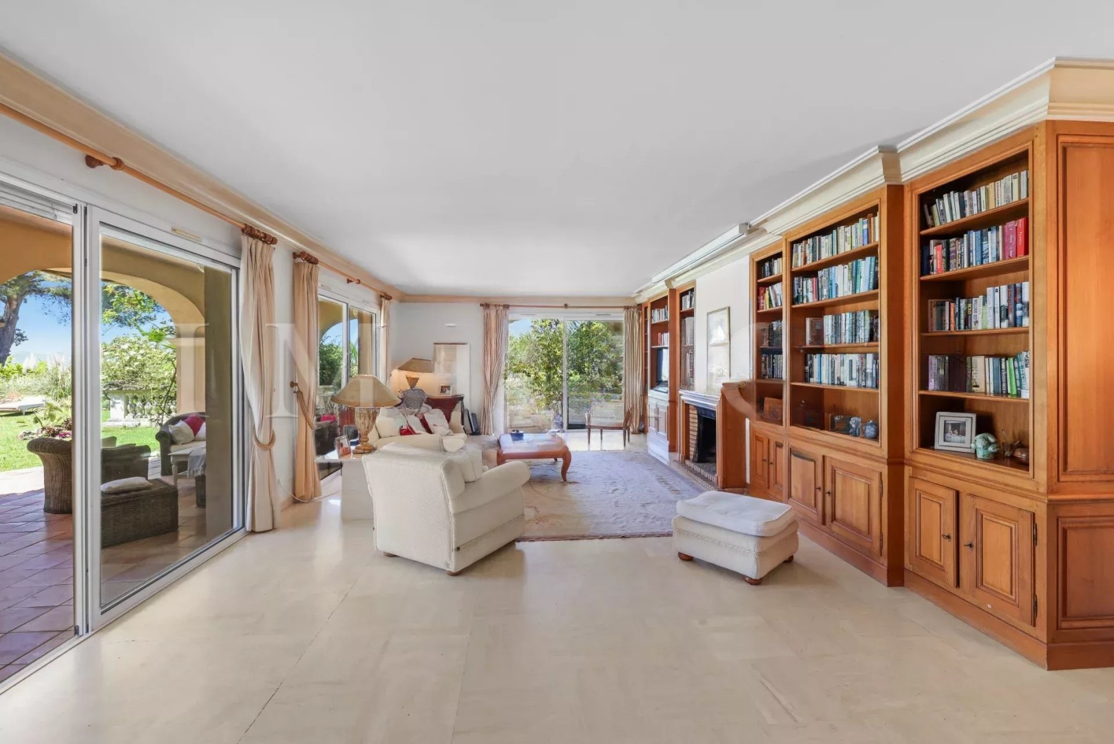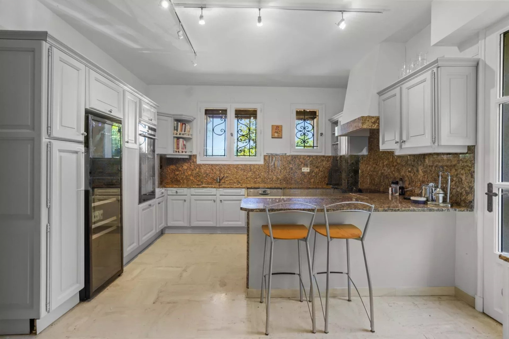 На первом этаже находится вестибюль, открывающийся на очаровательный патио. Просторная и теплая двойная гостиная с прямым выходом на террасу и к бассейну. Главная спальня с гардеробной и ванной комнатой имеет террасу с видом на сад. Кухня оборудована и открывается в столовую с видом на патио.
