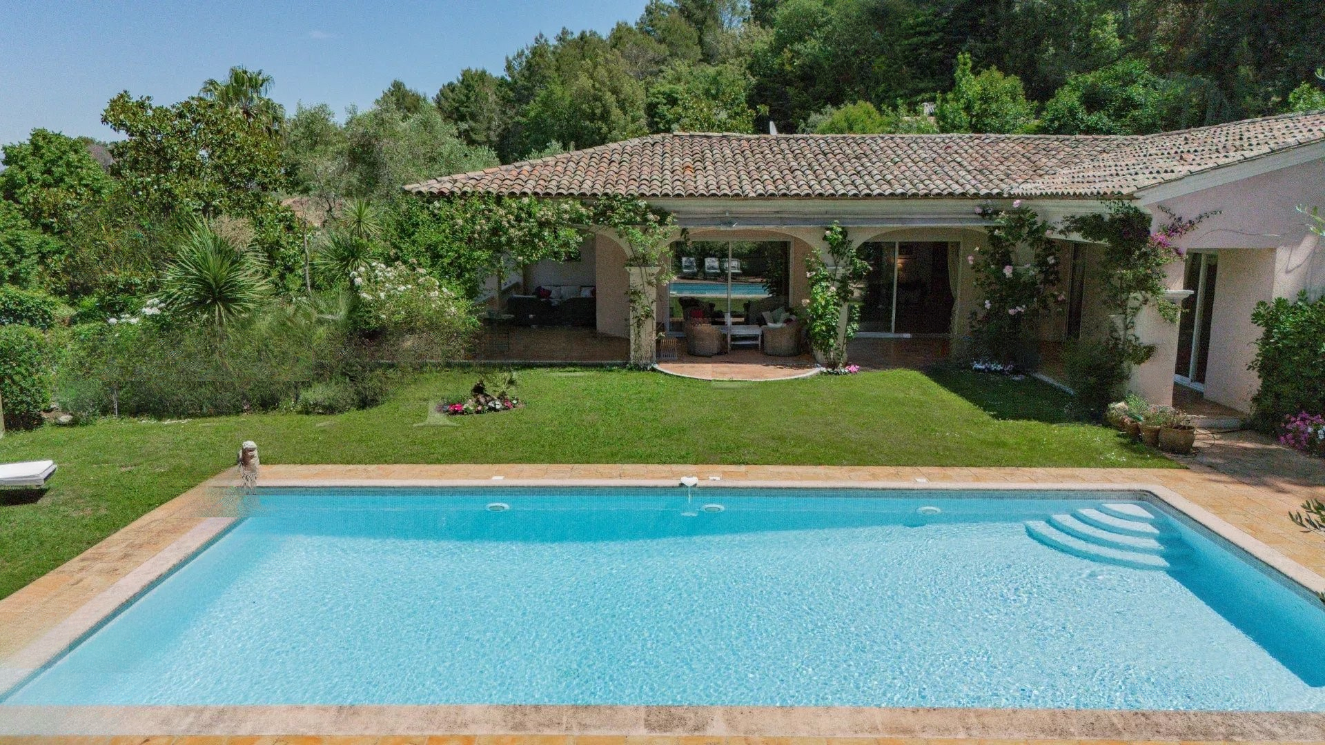 ️ В самом сердце частного и охраняемого комплекса на возвышенности, расположена провансальская вилла, наполненная светом и обладающая исключительными объемами. Усадьба находится на плоском участке с деревьями и цветами площадью почти 2400 м².