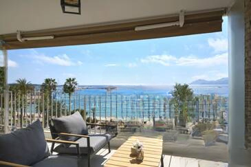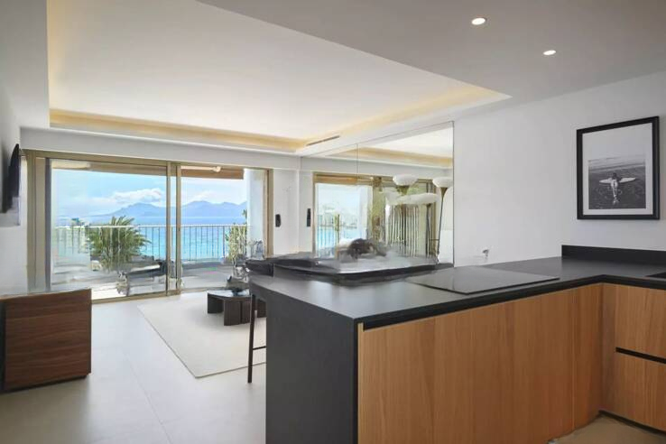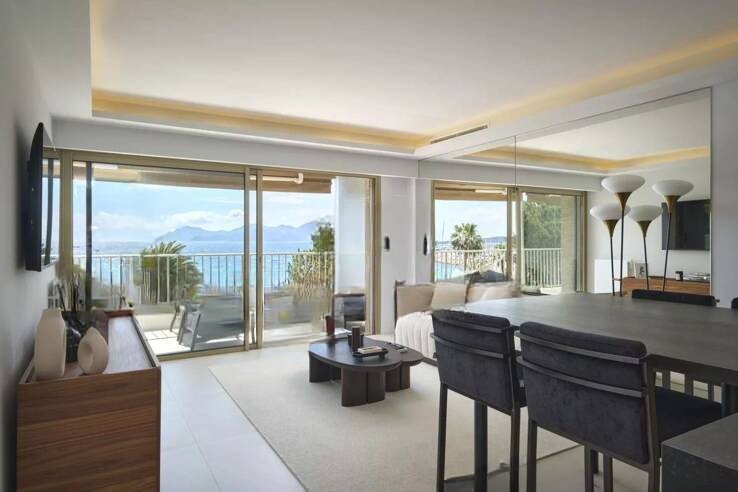 Сразу при входе можно ощутить тёплую и современную атмосферу. Гостиная, залитая светом, открывается через большую стеклянную дверь, ведущую на террасу, обращённую на юг, с великолепным видом на море, бухту Канн и легендарные пляжи Круазет.