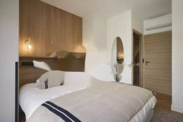 Апартамент включает светлую гостиную с полностью оборудованной открытой кухней, а также две спальни, каждая со своей собственной ванной комнатой.