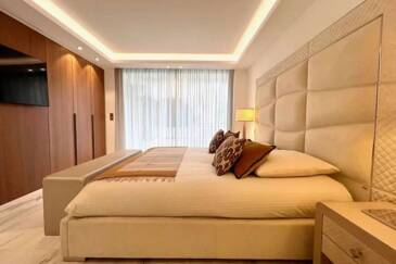 Зона ночного отдыха предлагает два тихих убежища, каждое с индивидуальным гардеробом и собственной ванной комнатой для абсолютного комфорта и уединения.