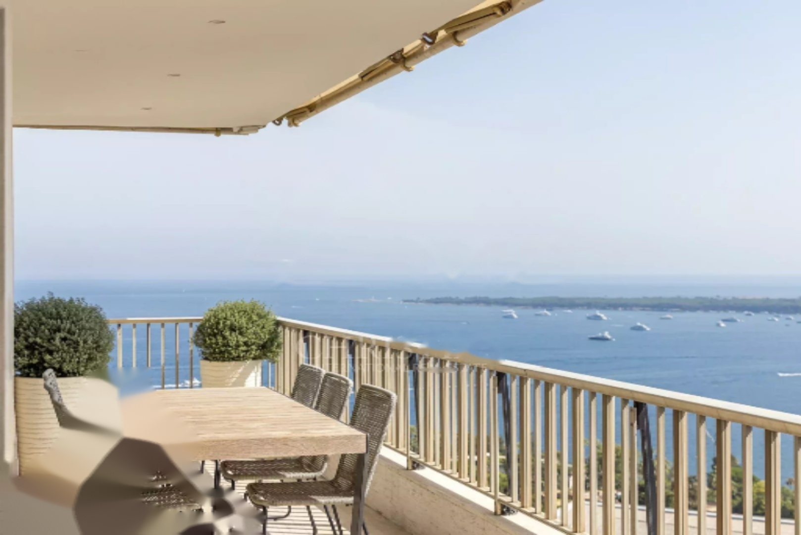 Квартира в отличном состоянии состоит из просторной, залитой светом гостиной, которая открывается на угловую террасу площадью 33 м². Отсюда открывается потрясающий панорамный вид на Средиземное море и Леринские острова. Отдельная современная и полностью оборудованная кухня порадует любителей гастрономии.